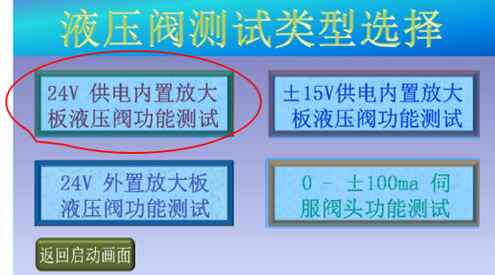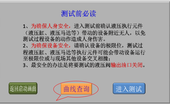 3、確認現場人員和設備安全后,點擊“進入測試”,進入液壓閥測試類型選擇畫面;